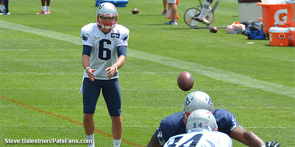 Patriots punter Ryan Allen getting some work in during Thursday’s practice.
