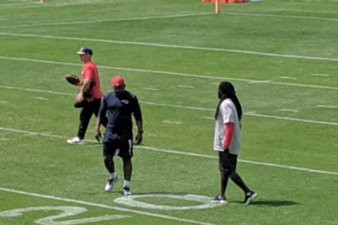 Ivan Fears – The Patriots running back coach is beginning his 21st consecutive year with the Patriots, he also had an earlier stint with the team. Fears is one of our favorite guys to watch and listen to during the practices. We got a chance to chat with him before practice briefly on Thursday. After mentioning that the running backs looked good so far but that we’re sure he’d find areas to critique them, Fears got a big grin and said, “Oh I’ll always find ways to critique them.” Asked about Brandon Bolden’s return, he said how Bolden brings energy to the field and his teammates every day.