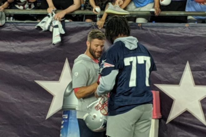 Not Practicing – Julian Edelman and Yodny Cajuste remain on NFI, Edelman, however, was in attendance and later signed autographs after practice was over. Those on PUP remain Demaryius Thomas, Nate Ebner, Cole Croston, and Ken Webster. Croston was seen on the sidelines which may be a good sign for him returning soon. Byron Cowart and Dontrelle Inman were also not in attendance again.