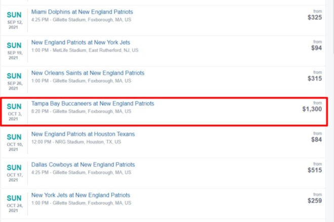 The contest should be Brady’s last-ever game at Gillette Stadium and it’s clearly going to be expensive for anyone looking to attend.